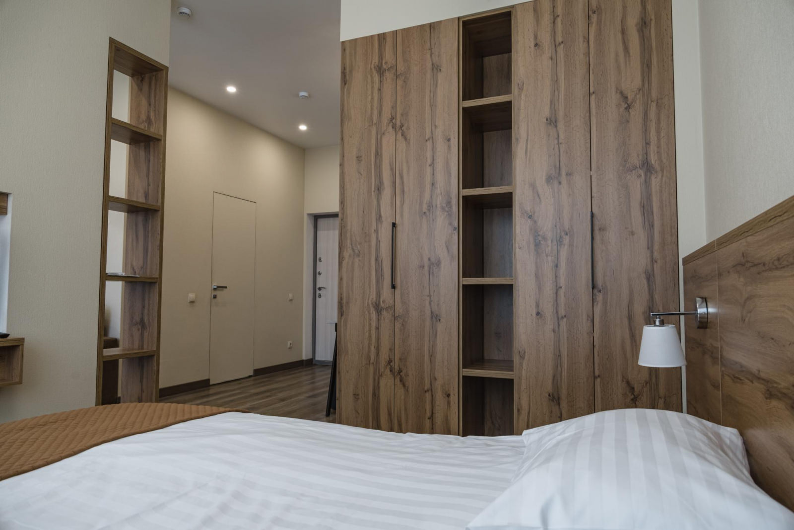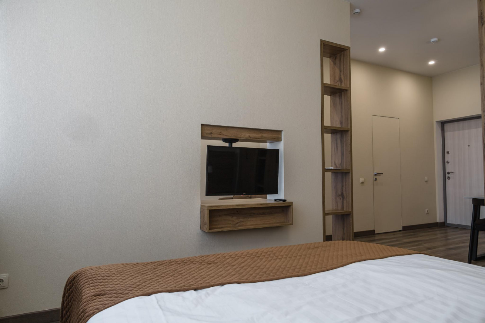 Однокомнатный номер с кухней рассчитан на 2 основных и 2 дополнительных места. Площадь номера: 45 кв.м. Основные места: одна двуспальная кровать. Дополнительное место: диван. Напольное покрытие: кафель и кварц-винил,линолеум. В каждом номере отеля: ортопедические матрасы, качественное постельное бельё и плотные шторы для комфортного сна и отдыха! Кухонный уголок с набором посуды. Номера расположены от первого до восьмого этажа. Из окон номера вид открывается благоустроенную территорию и горный массив и море.